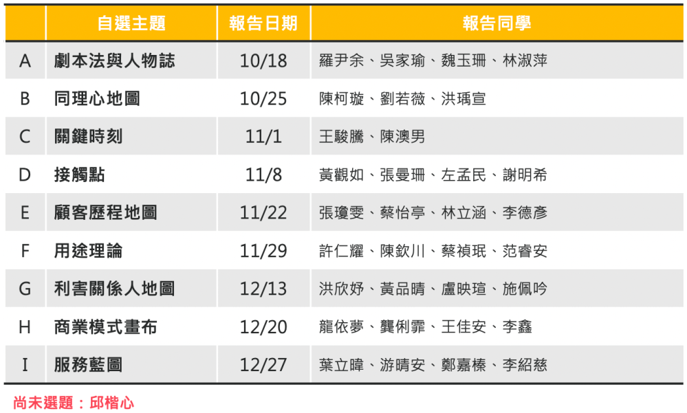 – week-10, Nov. 22:服務原型工作坊
